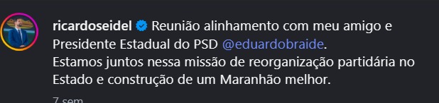 De acordo com informações publicadas pelos próprios aliados, o gestor municipal tem recebido, com frequência, vereadores de outras cidades no espaço institucional da Prefeitura, como é o caso do vereador de Imperatriz, Ricardo Seidel, pré-candidato a deputado estadual e o vereador Lucas Alves, de Açailândia, que é pré-candidato a deputado federal. Braide também recebeu o delegado César Ferro, filiado ao PSD e pré-candidato a deputado estadual.
